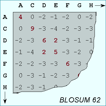 A substitution matrix for aminoacids is a 20 x 20 matrix in which for every pair of aminoacids we assign a log-odd score based on the observed frequencies of such occurences in alignments of related proteins. Identities are assigned the most positive scores. Frequently observed substitutions also receive positive scores and seldom observed substitutions are given negative scores.