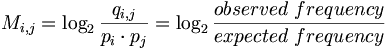 Consider qi,j the probability that amino acid i transforms into amino acid j and pi as the frequency of amino acid i. We want to compare these probabilities, to determine whether an alignment of two residues is functionally meaningful. Accordingly, we define a number Mi,j called the log-odd ratio, which gives a measure of the likelihood of two aminoacids being related: